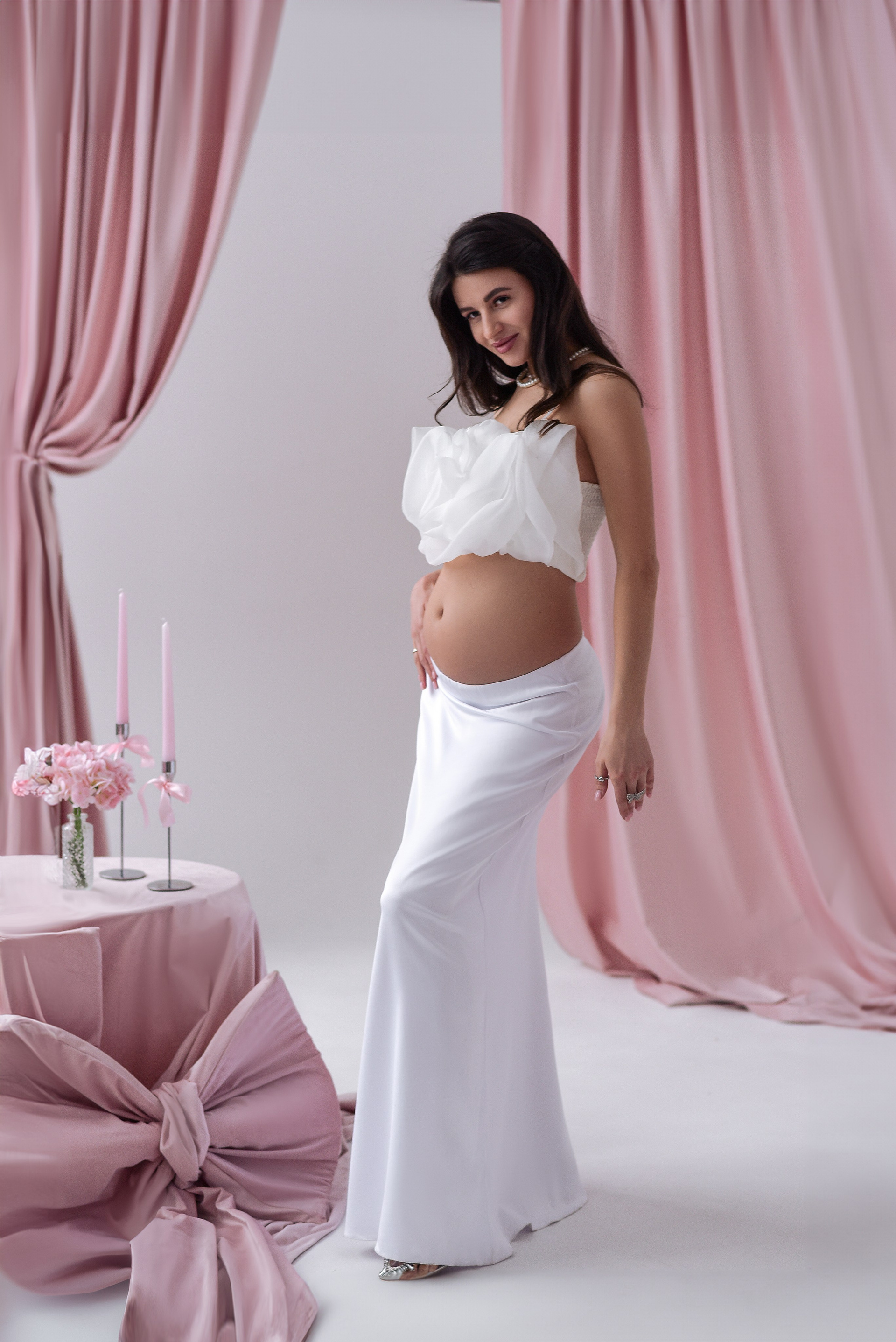 Белый корсет — Размер: 42-48. Изумрудная юбка — Размер: 44-50.